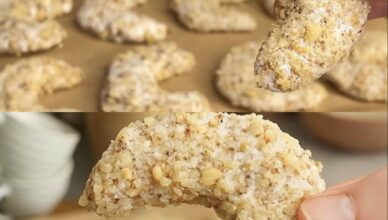 Ovi nježni polumjeseci kolačići pravi su praznični ukras – jednostavni, bez brašna, bez glutena i pripremljeni sa samo tri sastojka. Spolja hrskavi, a