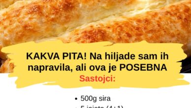 Sastojci: 500g sira5 jajeta (4+1)2dl jogurta2dl gazirane vode1dl ulja12g praška za pecivosoli po ukusu, ako sir nije dovoljno slan500g kora za pitu DETALJE
