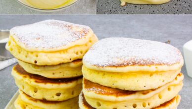 Sastojci Priprema 1 Umutite jaja sa šećerom.2 Dodajte mlijeko i lagano promiješajte.3 Umiješajte prosijano brašno, so, sodu bikarbonu i prašak za pecivo.4 Dodajte