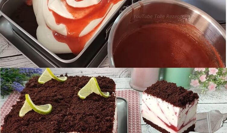Ohlađenu koru izvaditi iz lima i prerezati po dužini tako da jedna polovica bude dosta deblja od druge. Deblju polovicu stavite na obrubljeni pleh. U grčki jogurt sobne temperature dodajte šećer, zatim u drugoj posudi pomiješajte želatinu i vodu i ostavite da se diže nekoliko minuta.
