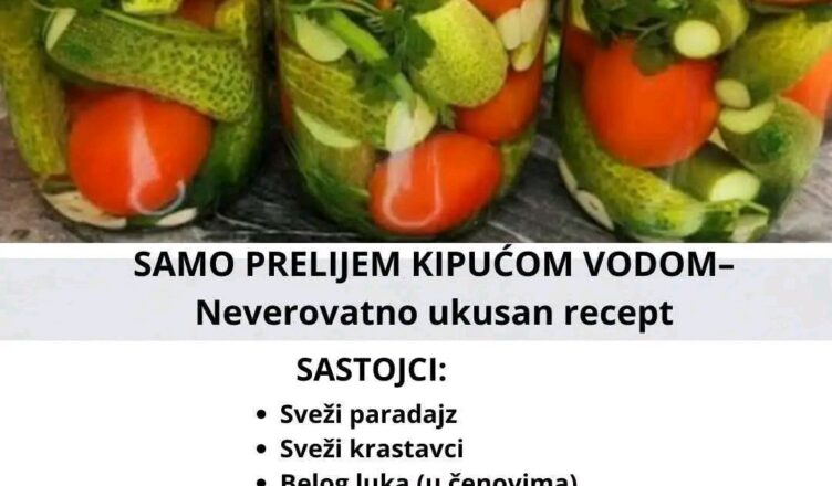 Ako tražite brz i ukusan način da sačuvate paradajz i krastavce, ovo je savršen recept! Bez komplikacija – samo prelijete kipućom vodom i uživate u rezultatima.