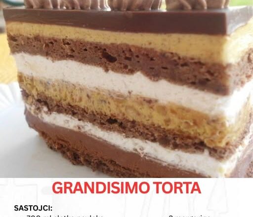 Ono što Grandisimo tortu izdvaja od mnogih drugih jeste savršena harmonija tekstura i ukusa – hrskavi ton lješnjaka, kremasta punoća fila, lagana slatka pavlaka i završni sloj glazure koji se topi u ustima.
