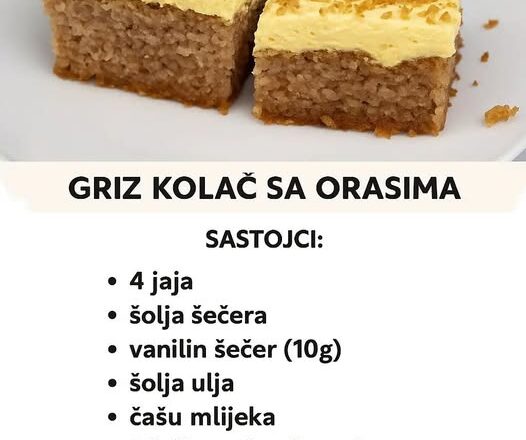 Postoje kolači koji osvoje na prvi zalogaj, a opet se prave nevjerovatno brzo i jednostavno. Upravo takav je recept sa grizom i orasima – spoj tradicije i sočne slastice koja nikoga ne ostavlja ravnodušnim.