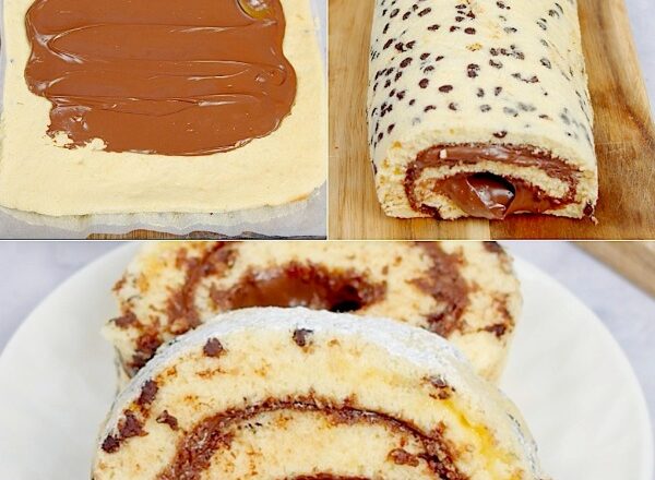 - Ohladiti, premazati Nutellom i zarolati u roladu.