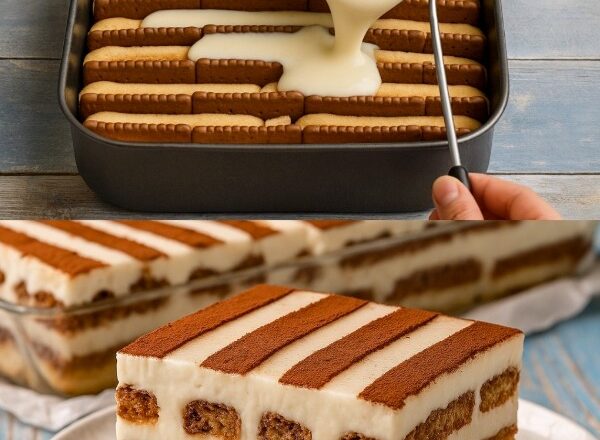 - Piškote kratko umakati u mlijeko i slagati preko pudinga.