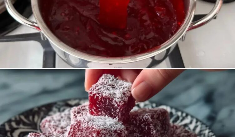 - Rezanje i uvaljavanje: Sutradan izvaditi, istresti na dasku posutu kokosom i isjeći na kockice (oko 2 × 2 cm). Svaku kockicu uvaljati u preostali kokos da se ne lijepe.