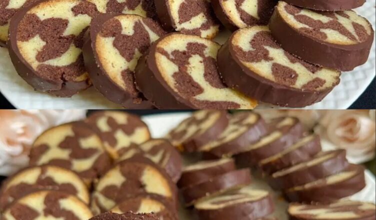 - Oba tijesta oblikujte u kugle i podijelite na 4 dijela. Oblikujte valjke i slažite ih naizmjenično – bijeli, pa tamni. Zajedno ih uvijte u roladu.