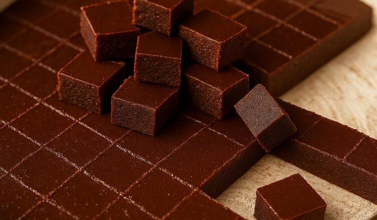 Dodati grožđice, orahe. Izliti smjesu u manju tepsiju i poravnati. Kad se malo ohladi, izrezati na kockice.