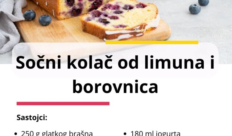 Sočni kolač od limuna i borovnica idealan je desert za svaku priliku – lagan, mirisan i ukusan. Slatkoća borovnica savršeno se nadopunjuje s kiselkastim notama limuna, dok glazura od šećera daje završni sjaj i dodatnu dozu slatkoće. Jednostavan je za pripremu i odličan izbor kad želite oduševiti goste ili razveseliti obitelj.