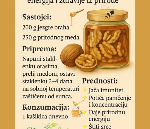 Kombinacija oraha i meda poznata je u narodnoj medicini kao prirodan lijek koji jača organizam i donosi brojne zdravstvene koristi. Kada se postavi