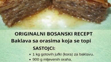POTREBNI SASTOJCI: 250 g griza180 g mljevenih oraha180 g šećera250 ml mlijeka2 jaja2 rendane jabuke100 ml ulja1 kesica praška za pecivo1 kesica vanilin