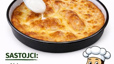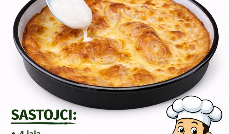 POTREBNI SASTOJCI:1 baget ili stari hljeb, narezan na kriške (oko 8 kriški)6 jaja1 kašika putera1 mali luk, nasjeckan250 mililitara (1 šolja) ½ kašičice