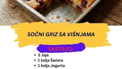 S0ČNI GRIZ K0LAČ SA VIŠNJAMA (NA Š0LJE)
